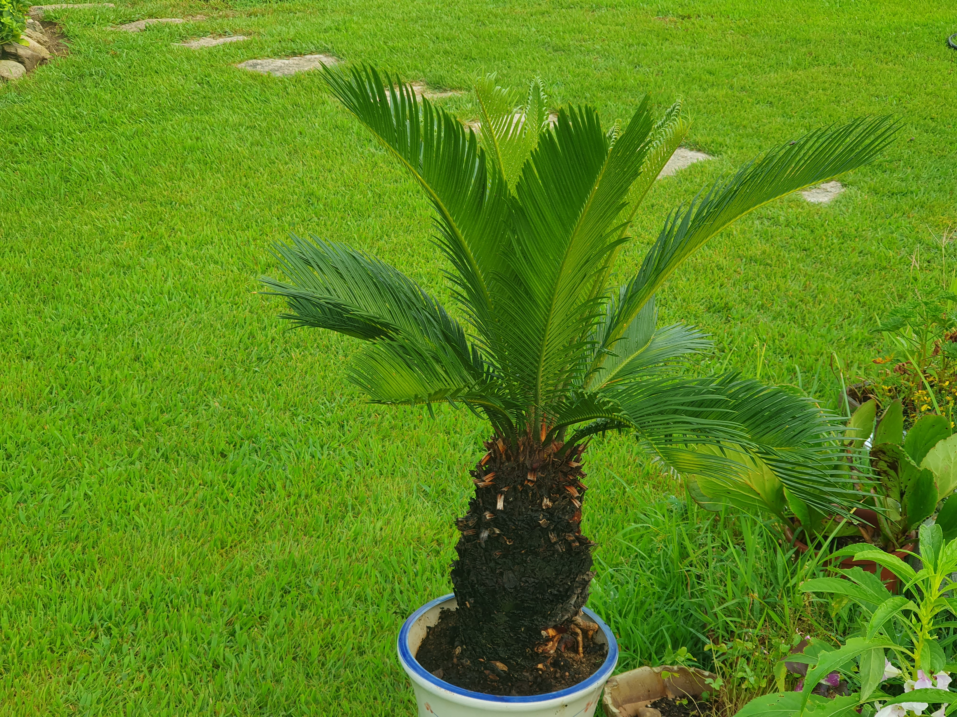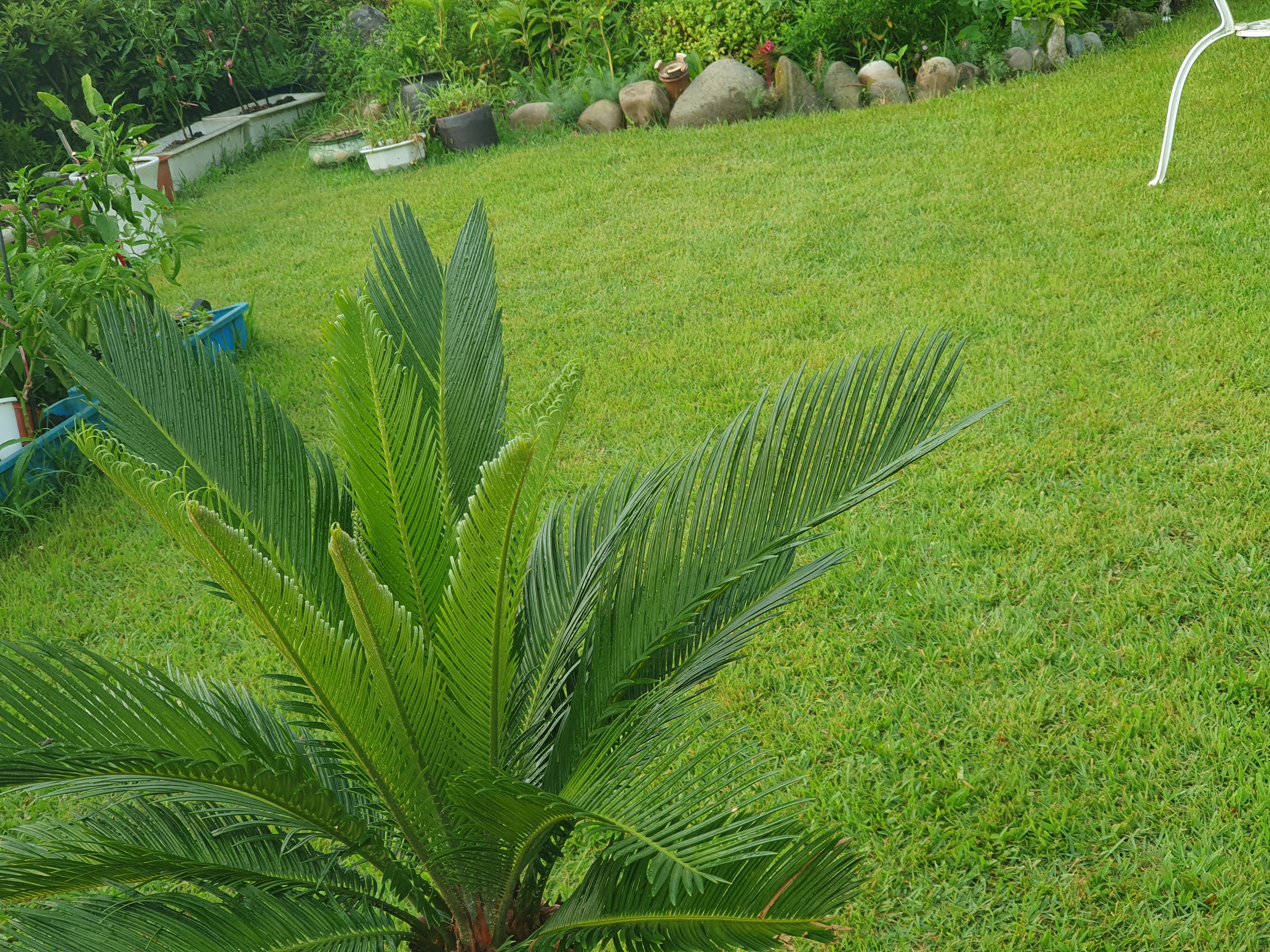 소철잎 끝을 스치면 찔려서 아파요. 사람이 잘 다니지 않는 가장자리에 둡니다.
