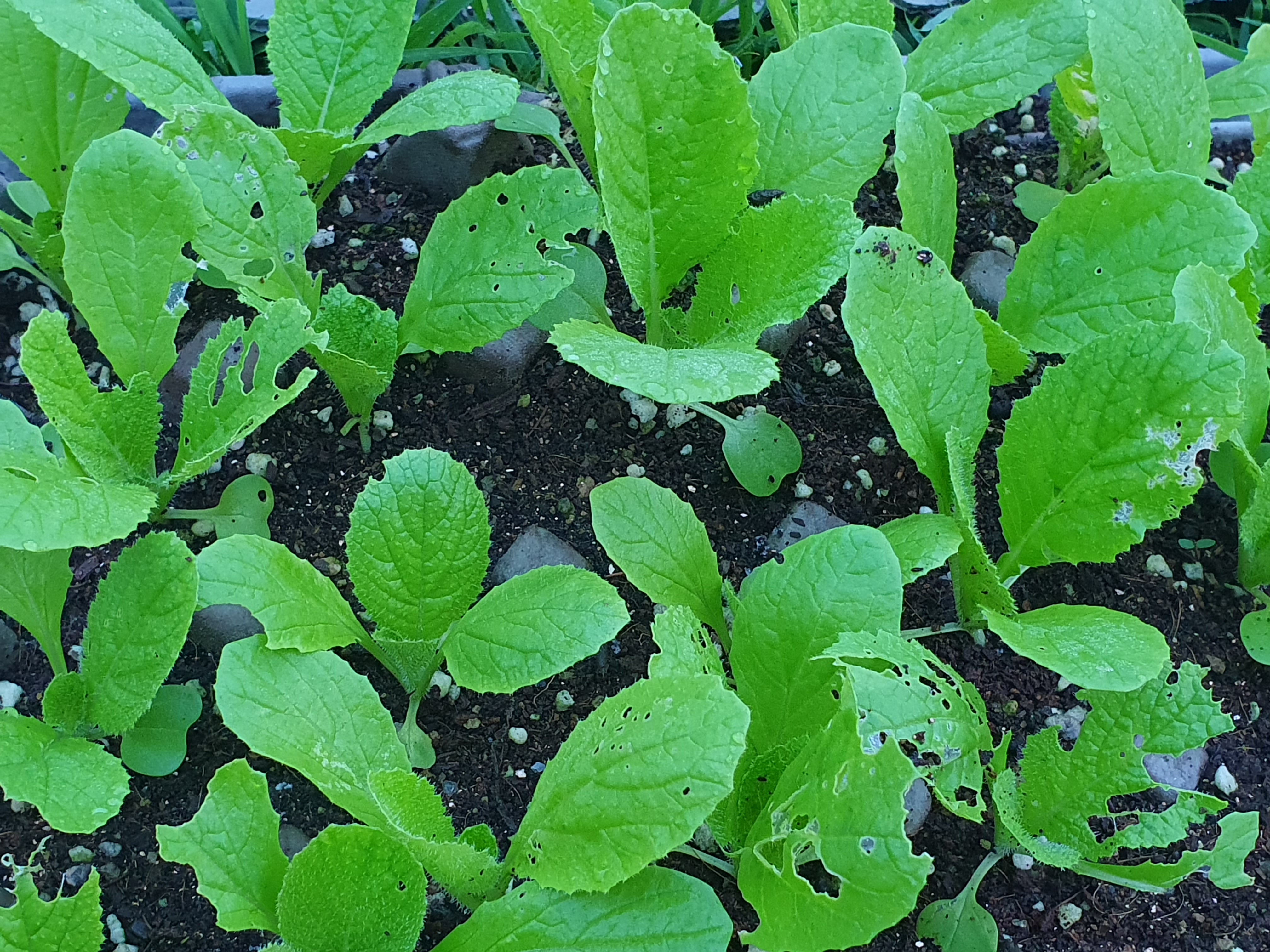 가장 충실한 배추 모종 22 포기 심었습니다. 22 포기가 잘 자라면 김장을 충분히 담을 수 있습니다. 남은 배추 모종은 빼곡히 심어놓고 자라면 수시로 뽑아 먹으려고 합니다. 배추 모종에 달팽이, 진딧물, 방아깨비, 메뚜기가 침범하지 않도록 조만간 한랭사를 덮어줄 예정입니다.