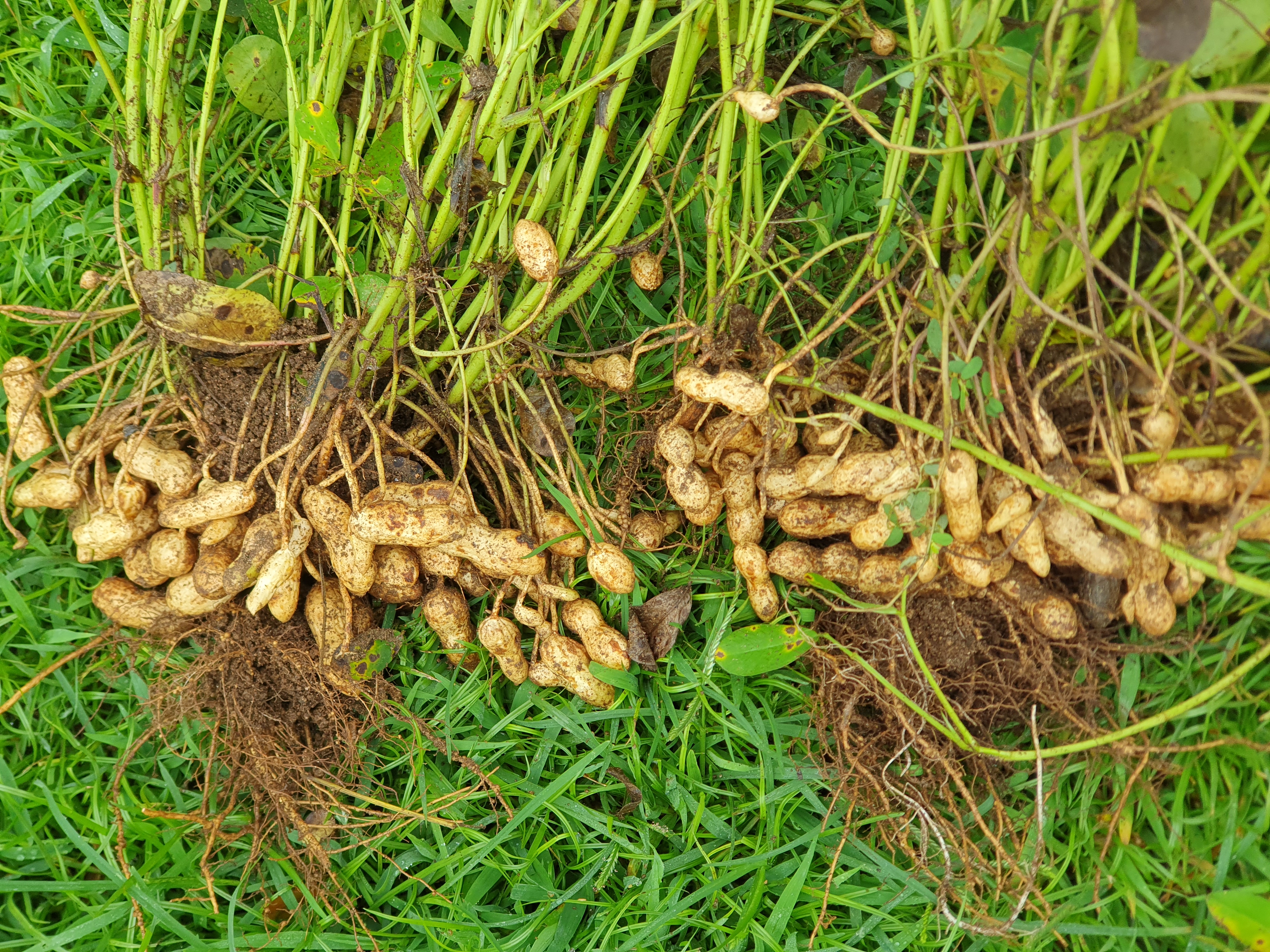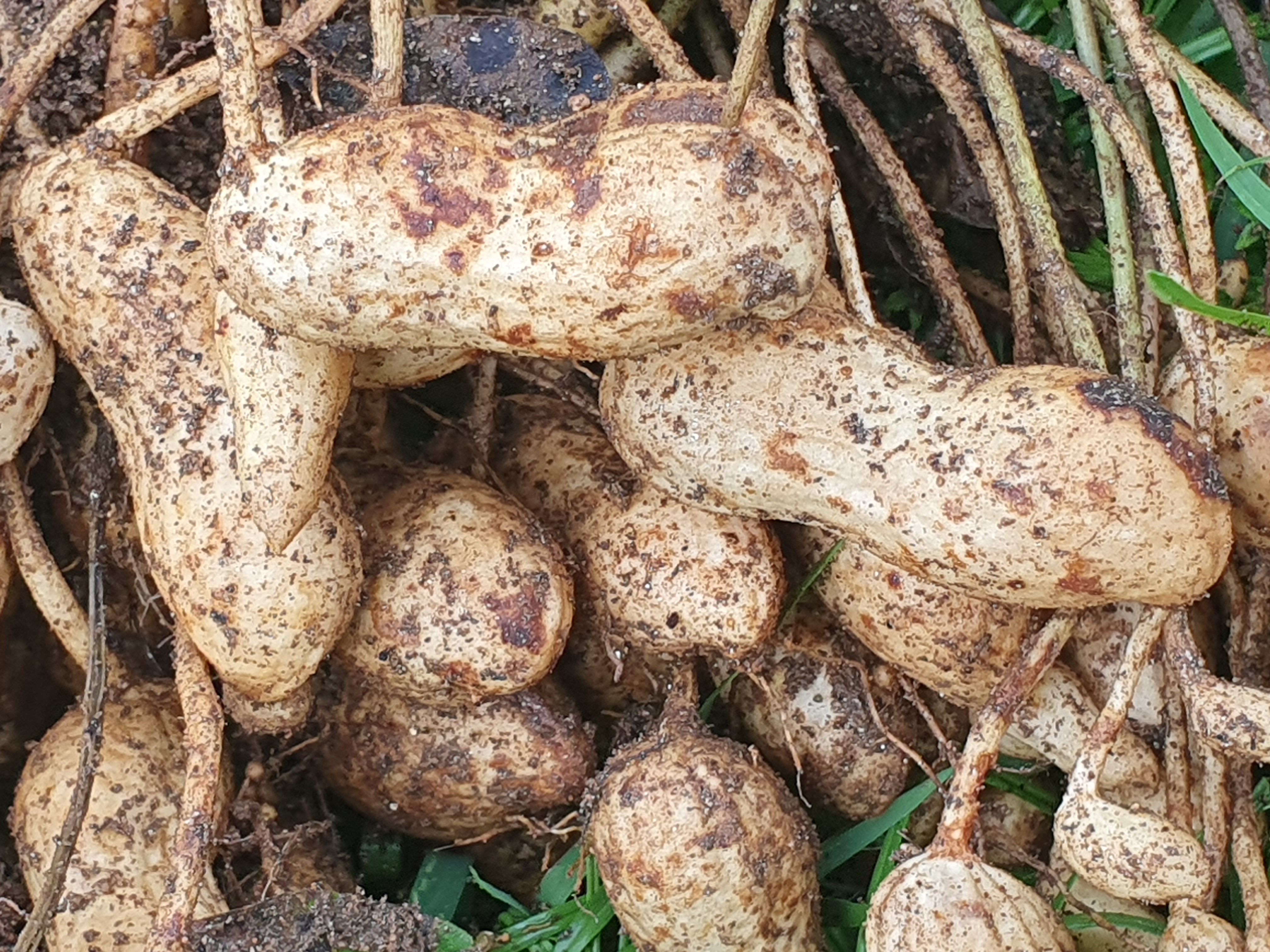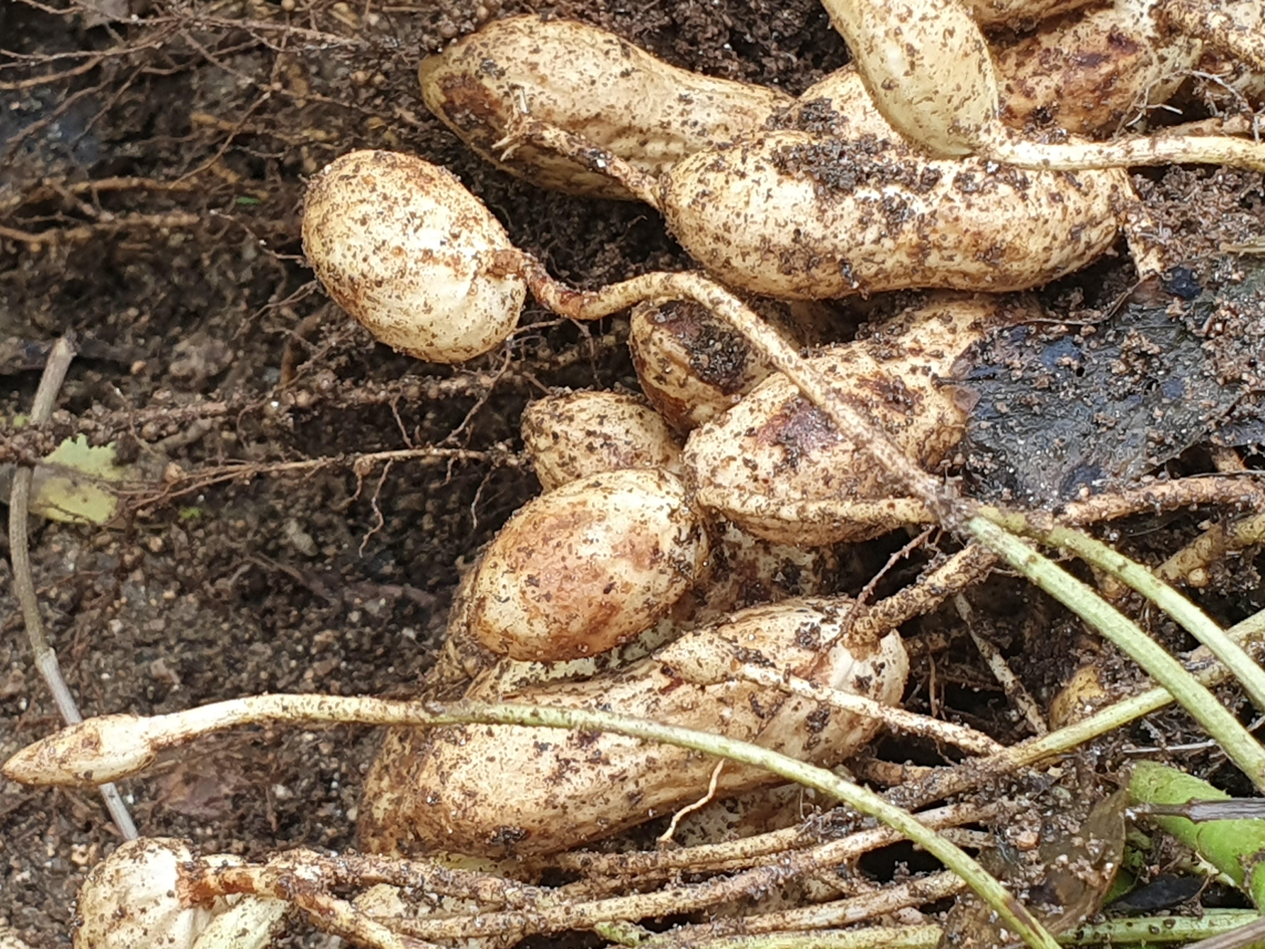 아직 땅속 굼벵이가 파먹지 않았습니다. 땅콩 수확 적기를 놓치면 굼벵이가 파먹기도 하고, 꼬투리 속에서 땅콩 싹이 트기도 합니다.