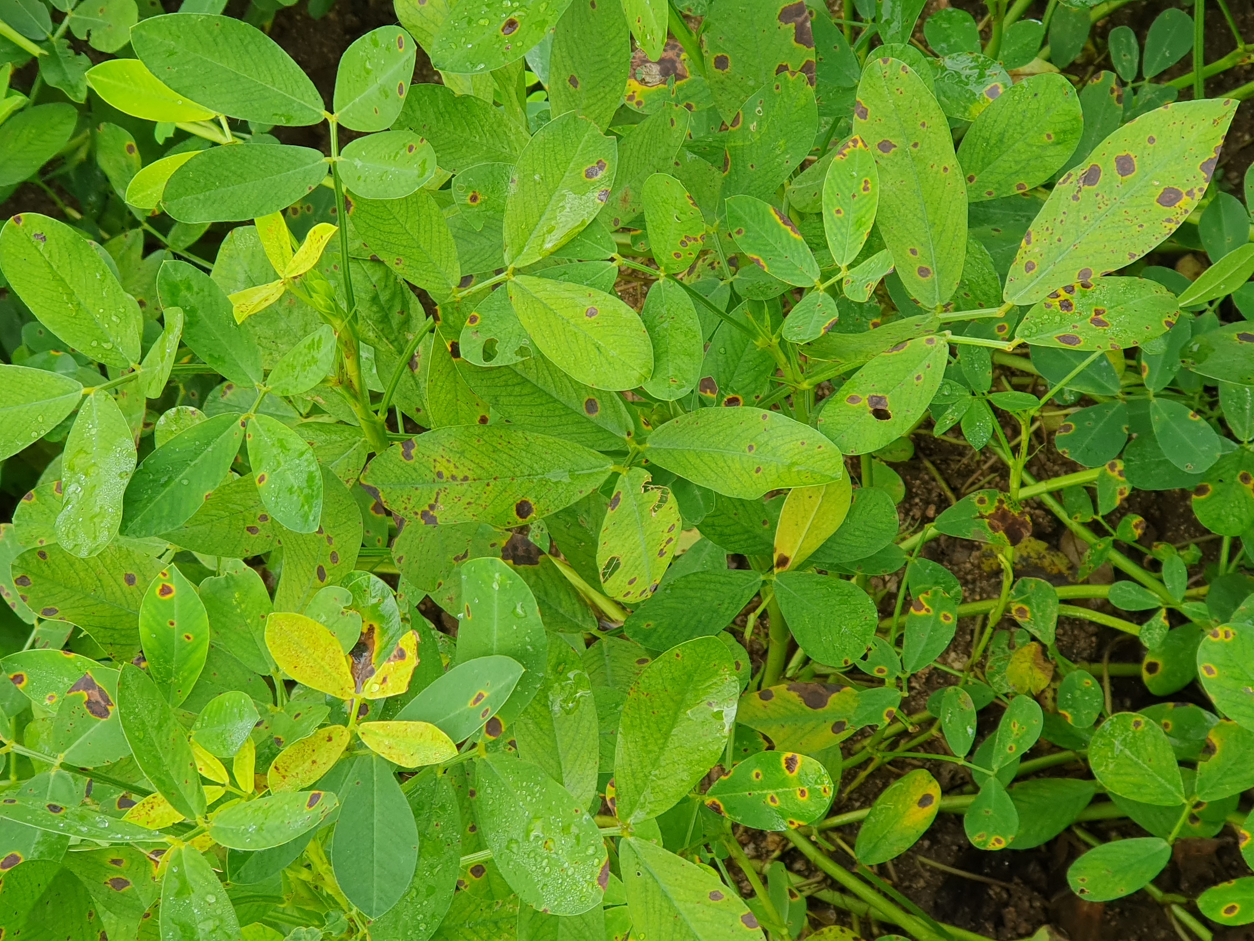 잎 변색 모습을 자세히 보니 병이 아니고 땅속 땅콩이 영글어 간다는 증거였습니다.