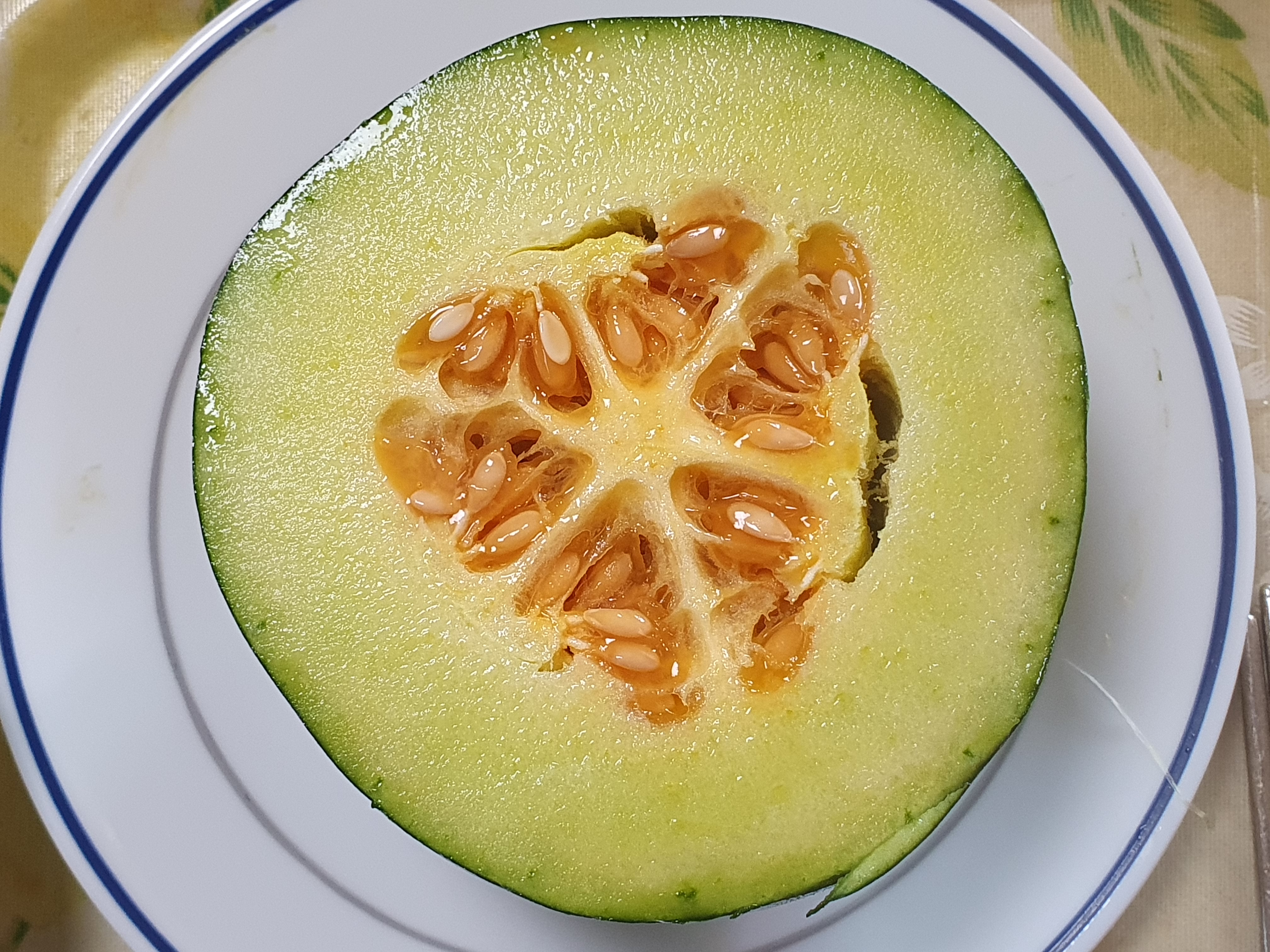 겉은 초록이지만 속살은 연노랑색상에 씨앗이든 태좌는 짙은 주황색입니다.