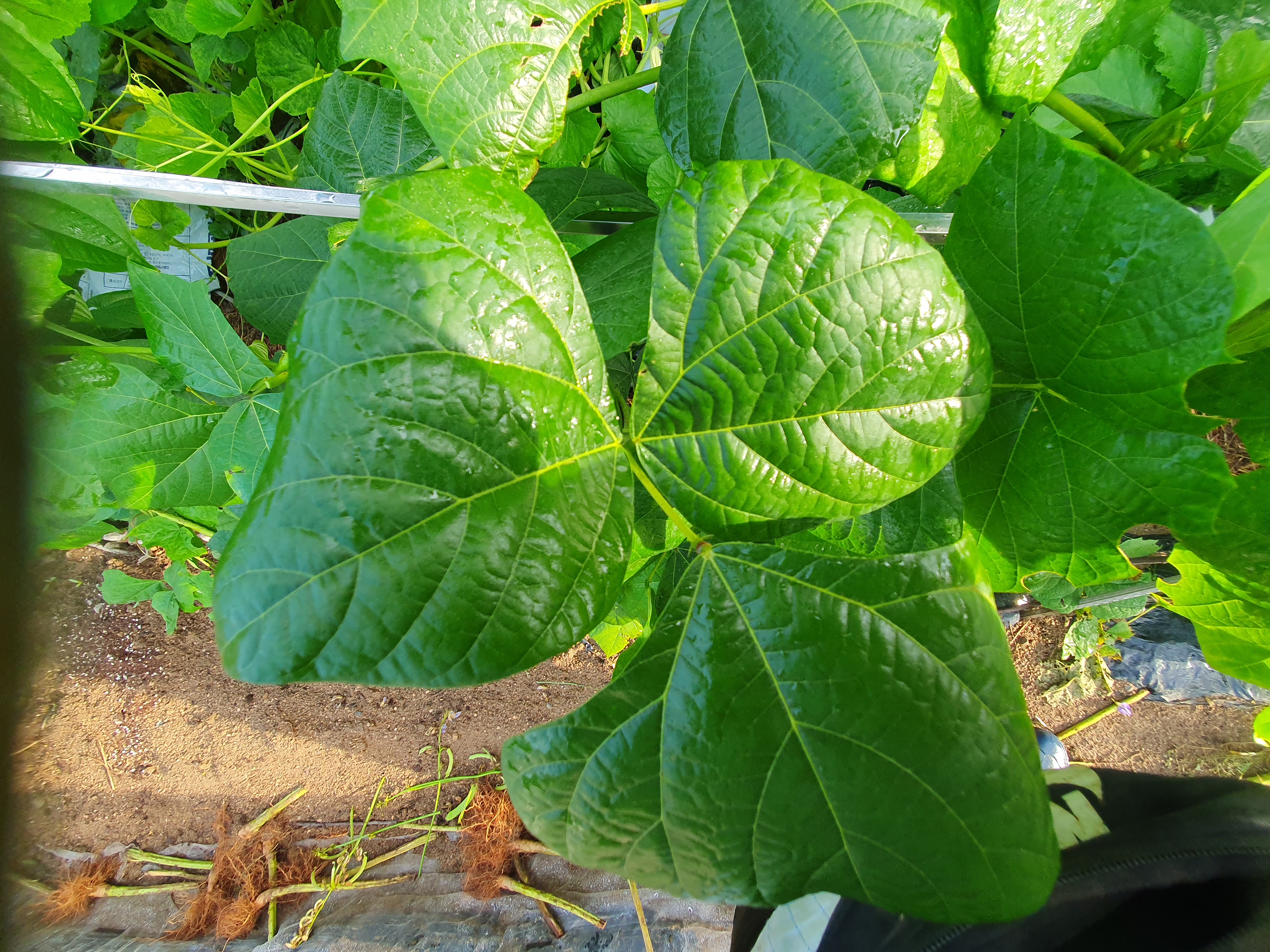 콩과 식물인 만큼 넓은 잎은 콩잎 같기도, 칡잎 같기도 한 히카마 잎 모습입니다.