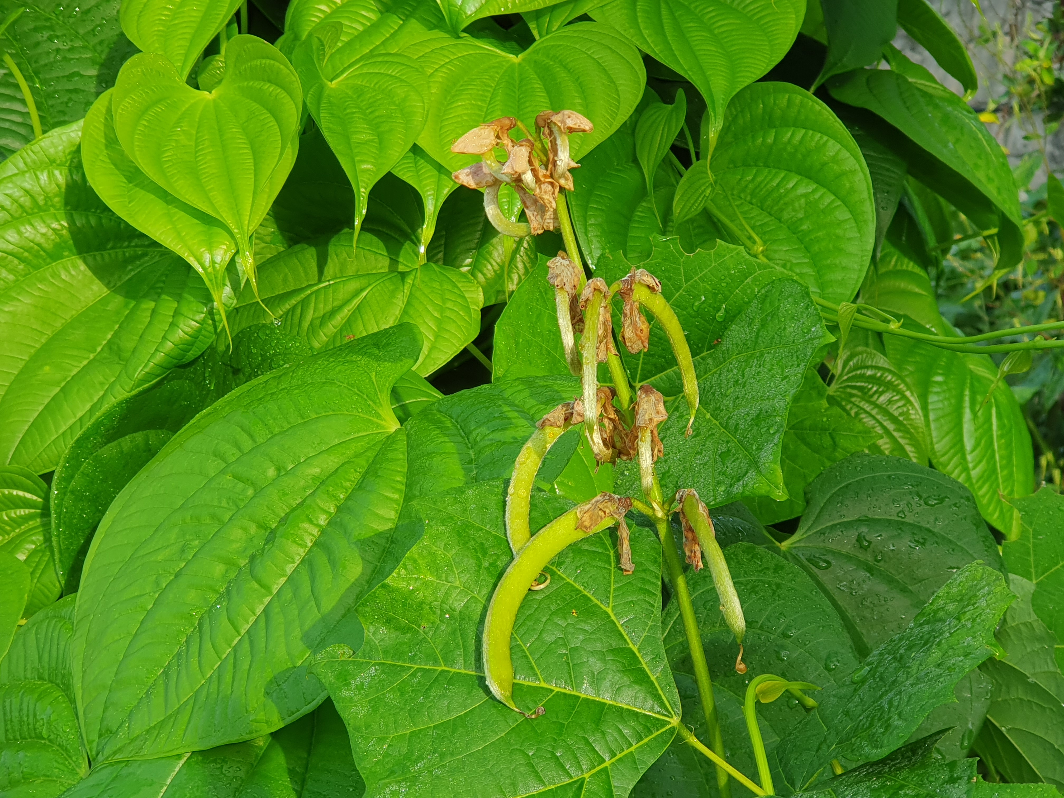 꼬투리가 실하게 여물어갑니다. 콩꼬투리 닮은 히카마 열매는 독성이 있어 식용할 수 없어요. 열매가 잘 익으면 씨앗을 채종하여 내년에 파종하면 됩니다. 히카마 뿌리가 어느 만큼 굵어져 있는지 매우 궁금합니다. 잎에 단풍이 들 때까지 앞으로 한 달은 더 기다려야 합니다.