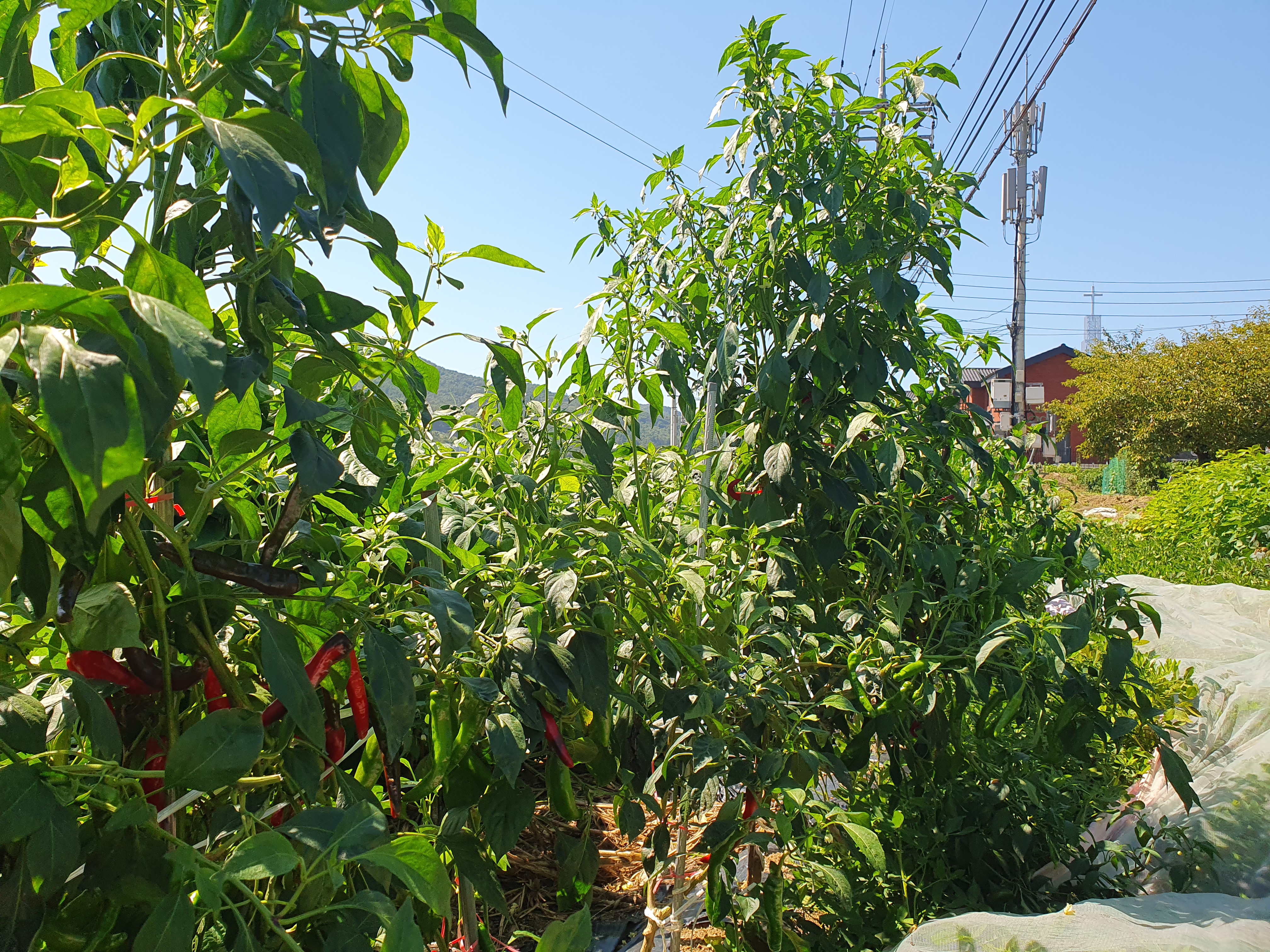 고추들이 여름 왔다 갔다 하던 잦은 소낙비와 흐린 날이 지나가니 이제야 고추나무들이 본격적으로 자랍니다.