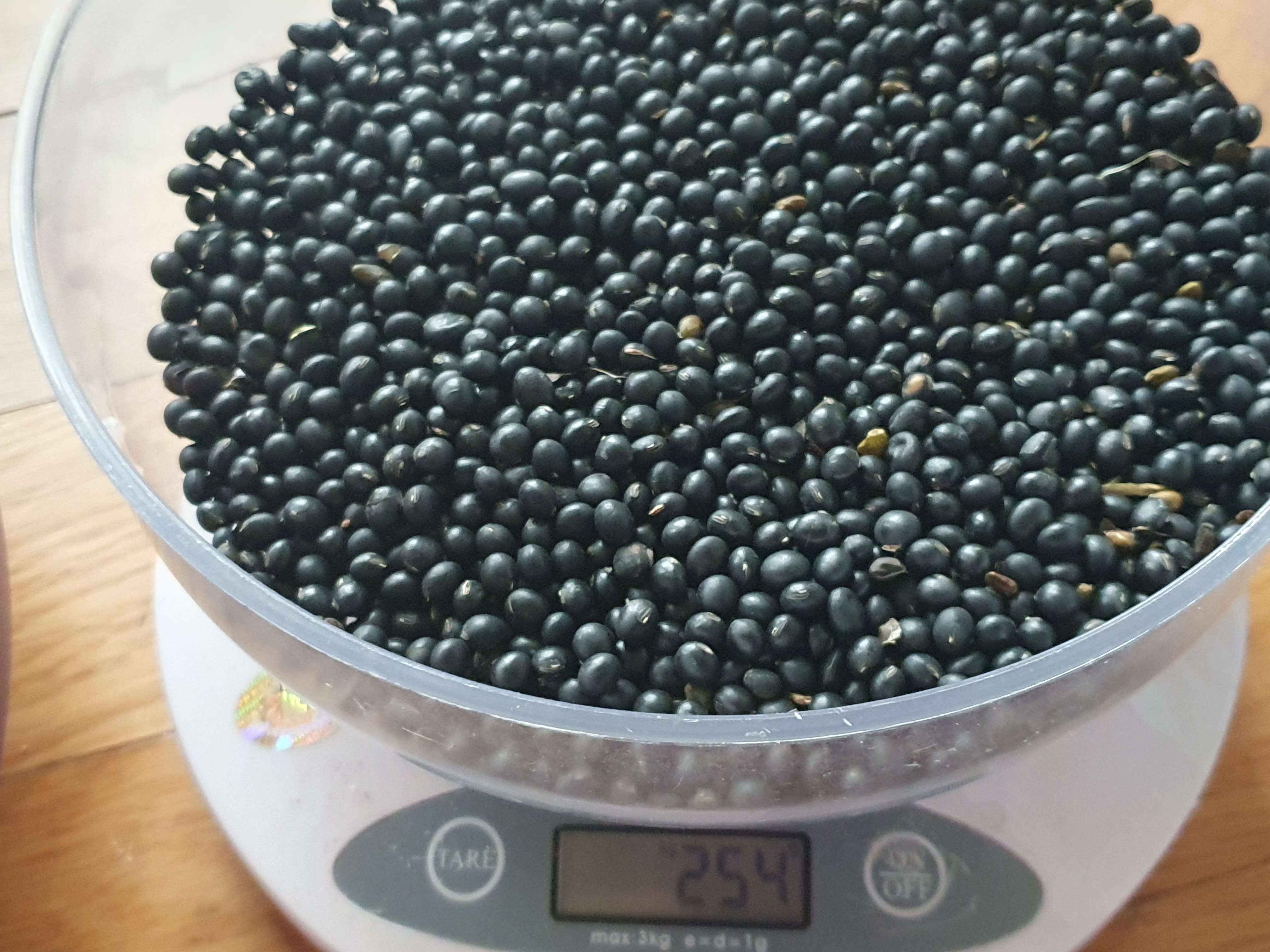 놀랍습니다. 0.1g 되는 콩 한 알이 자라서 만들어놓은 무게, 그 양이 무려 254g이나 됩니다.