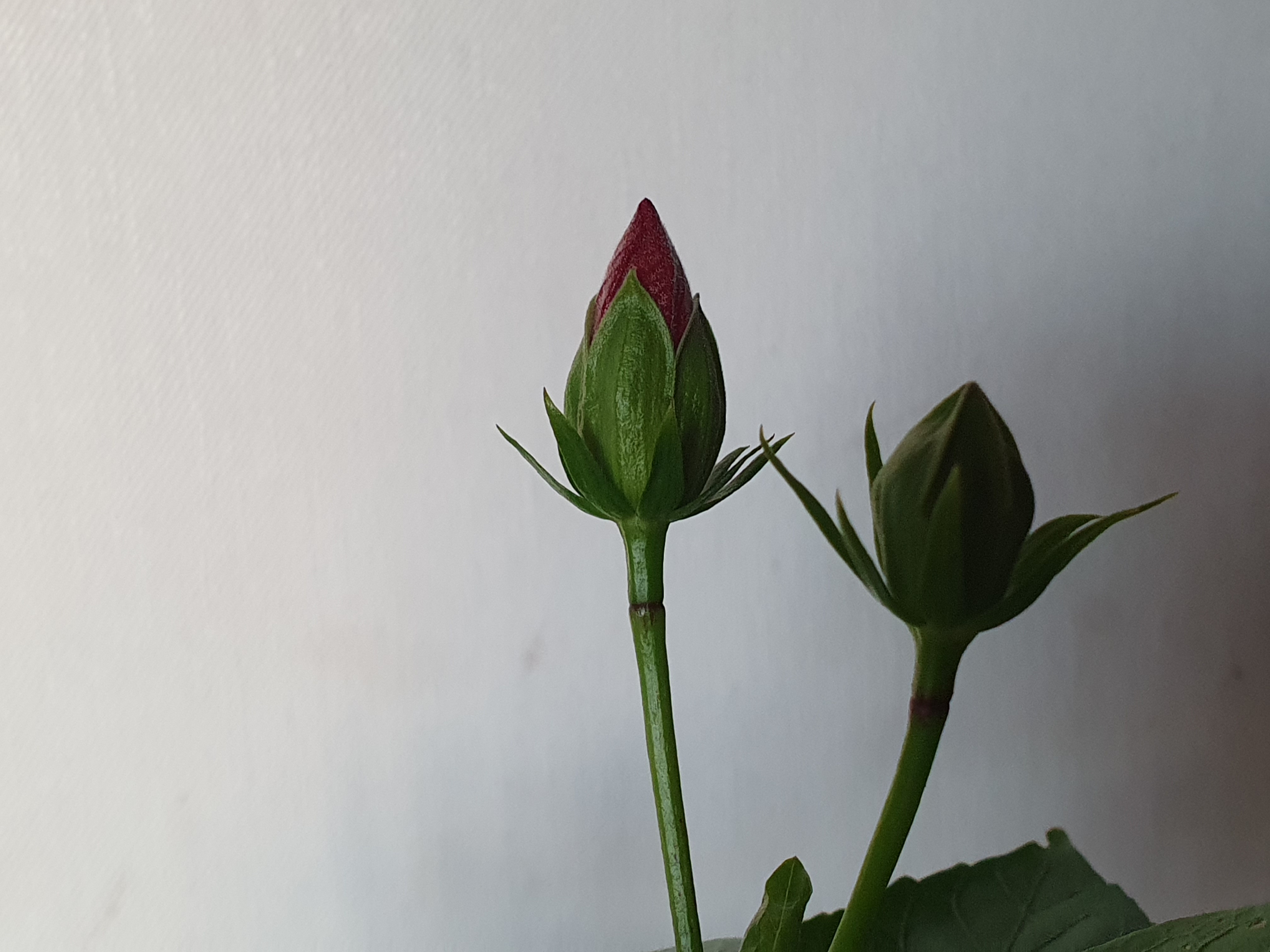 꽃필 차례를 기다리며 대기하고 있는 하와이안 무궁화 꽃봉오리들