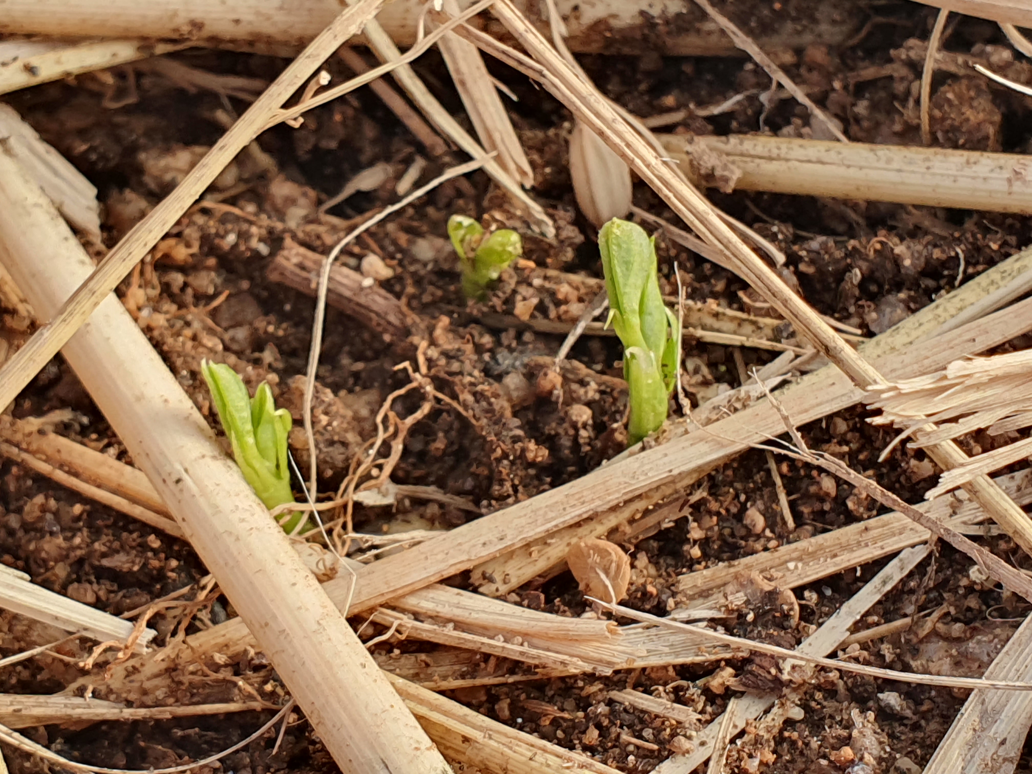 지난 11월 초에 심었던 완두콩이 싹을 틔우고 있었습니다.