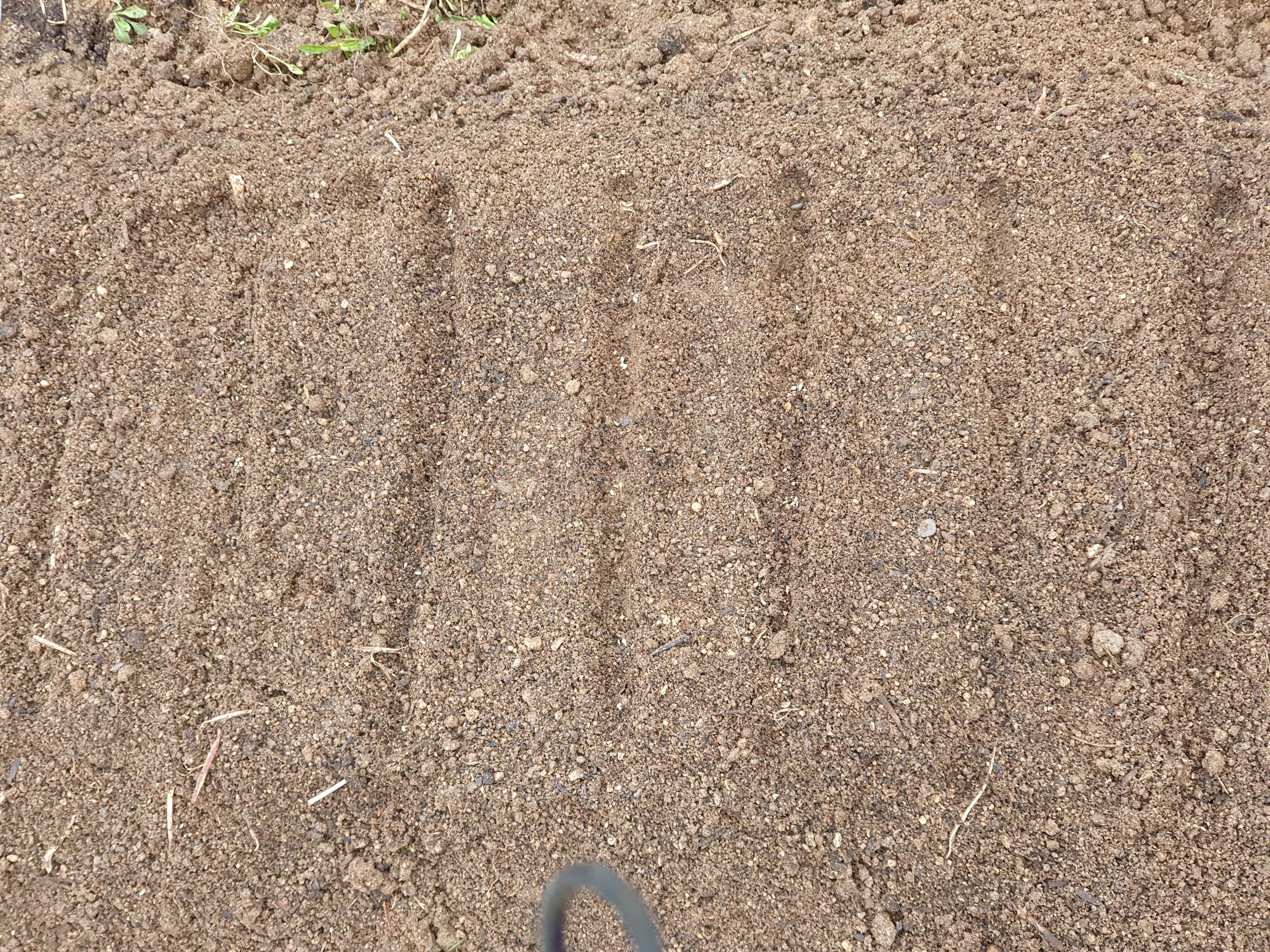 콩고물처럼 부드럽게 만들어놓은 이랑에 손가락으로 줄을 그었습니다.