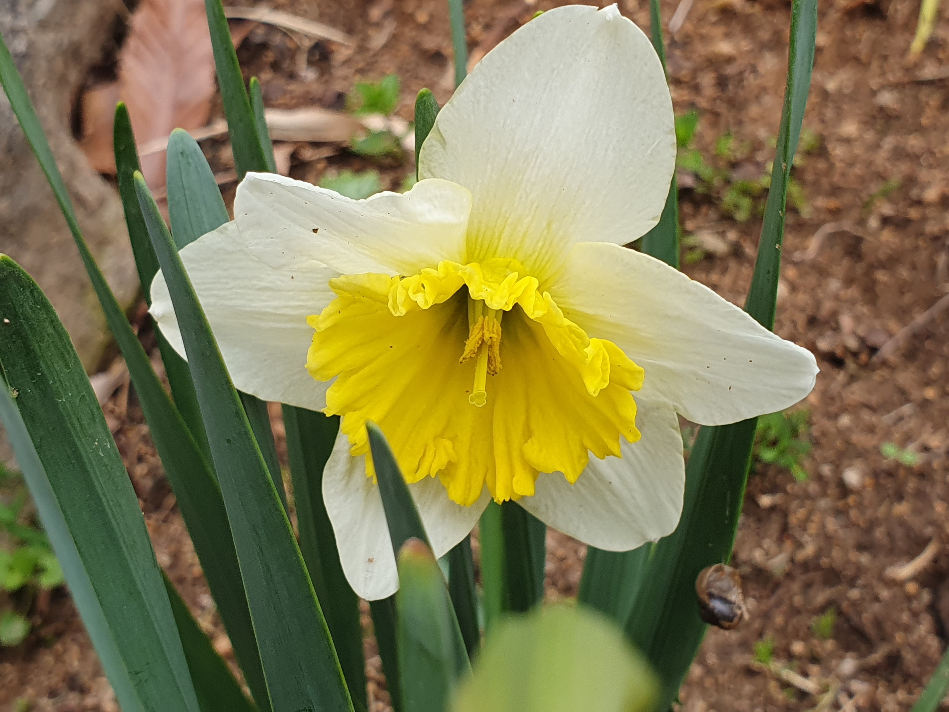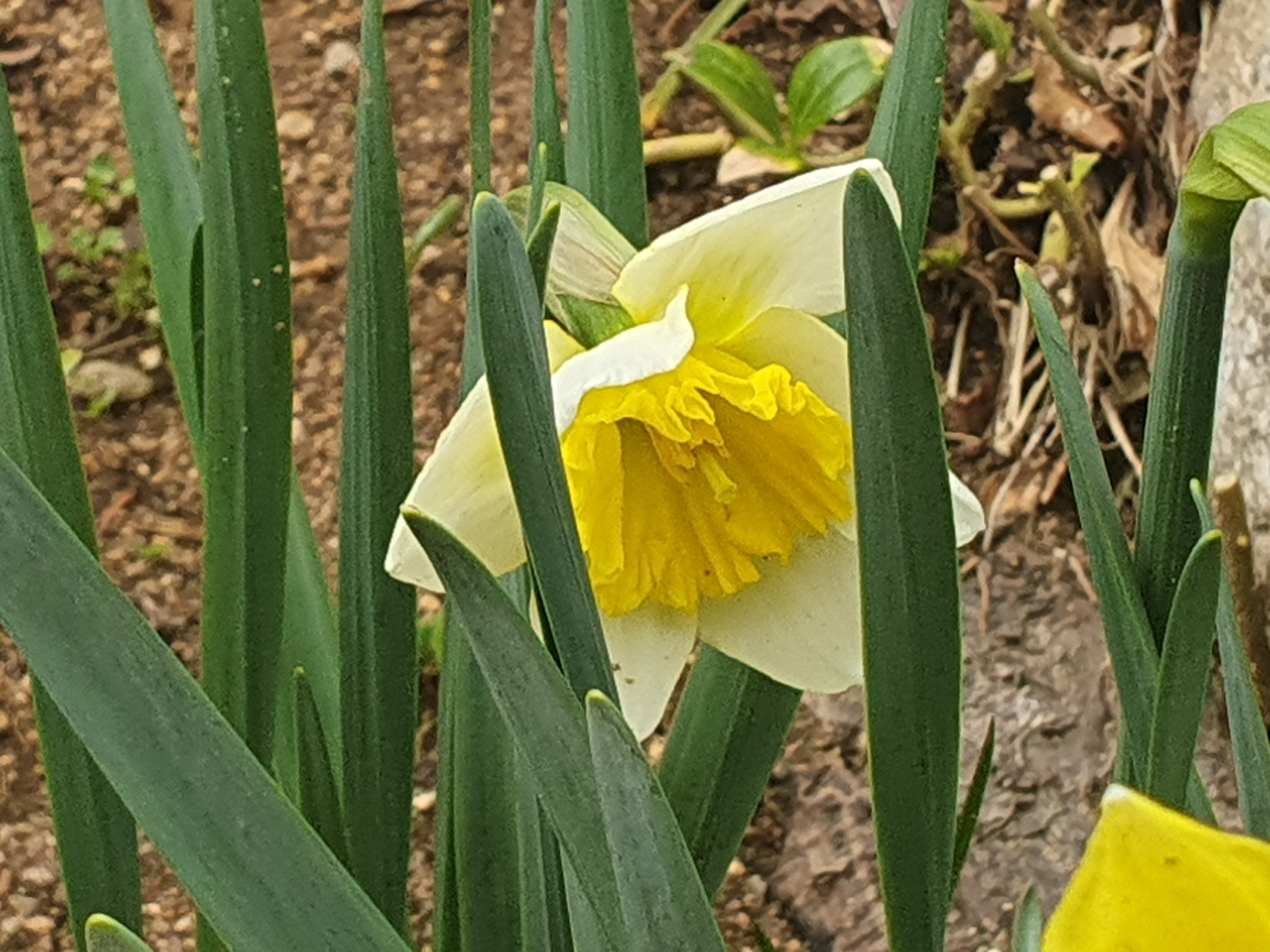 연노랑 꽃잎을 가진 수선화도 한 송이 피어났습니다.